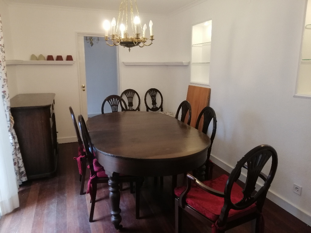 Inserido num prédio de traça antiga, é composto por sala de estar, sala de jantar, hall, saleta com lareira, 3 quartos, zona de roupeiros, despensa, cozinha totalmente equipada e duas casas de banho completas.
