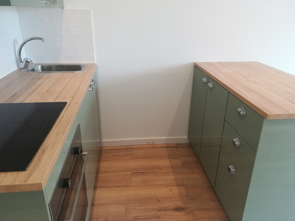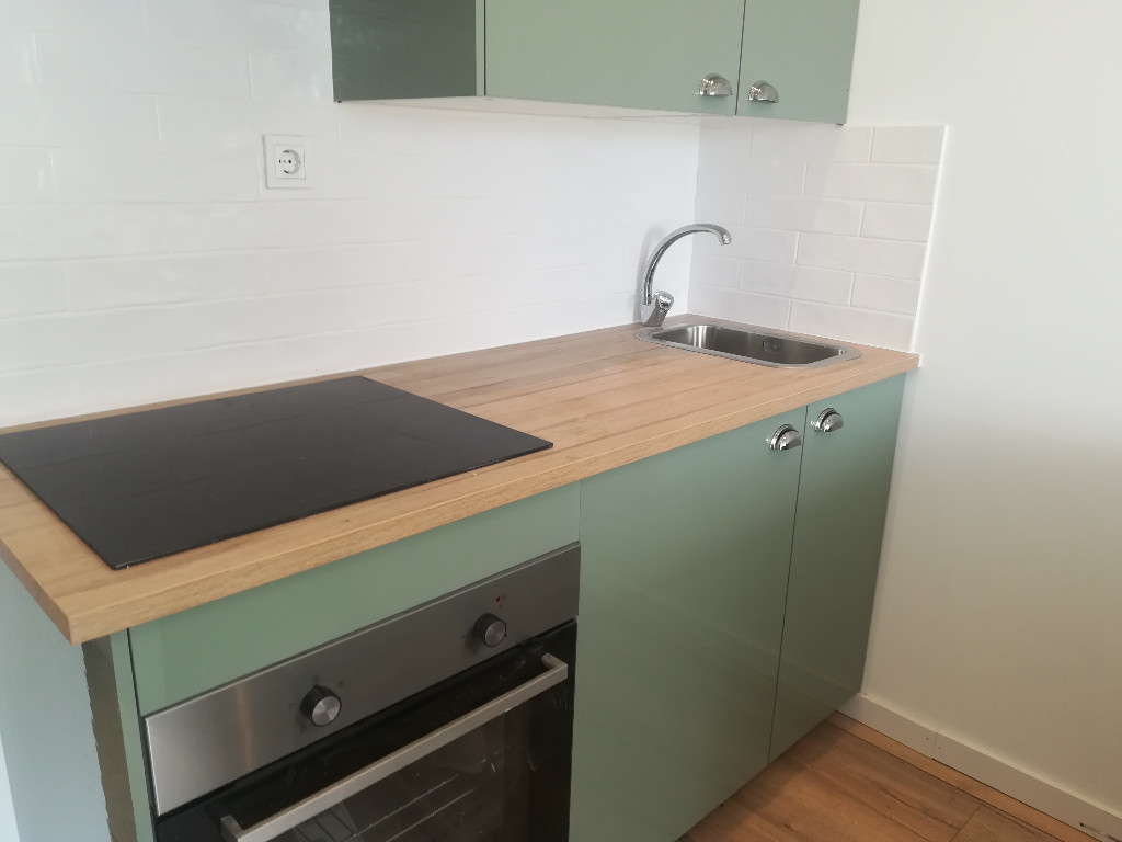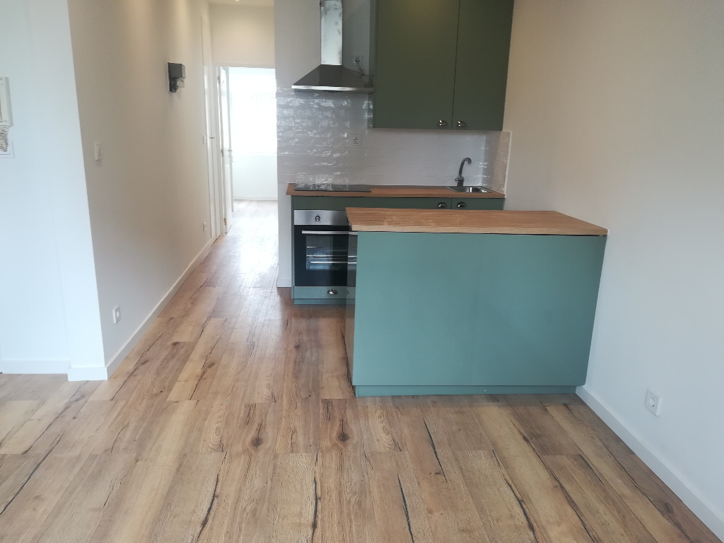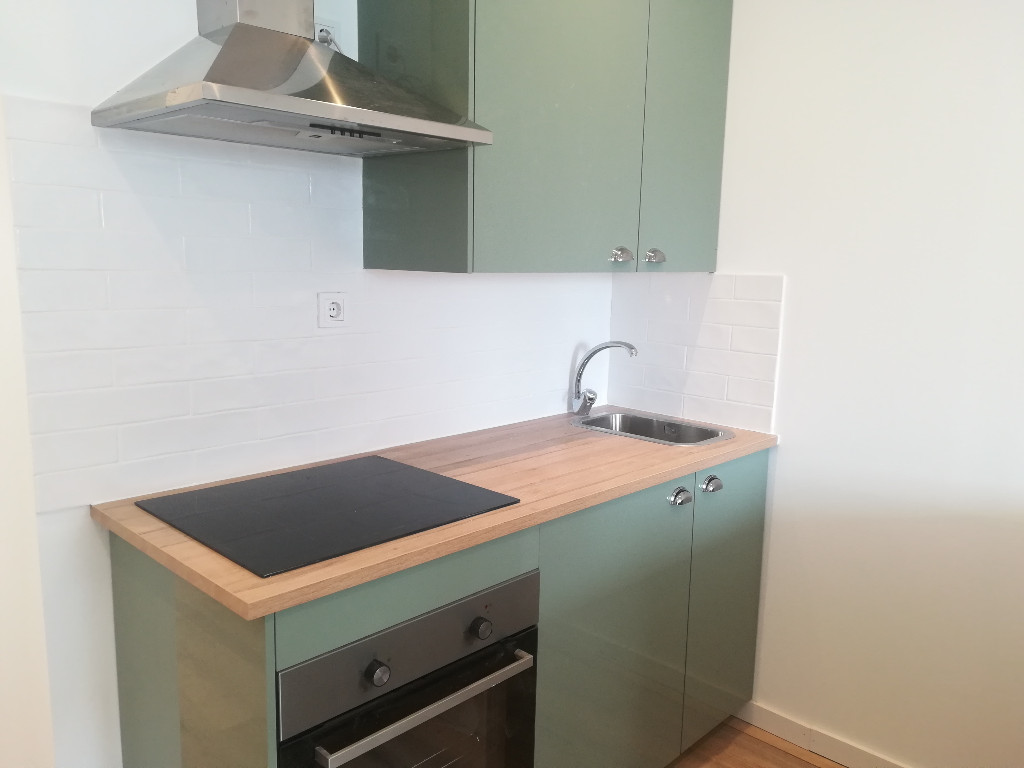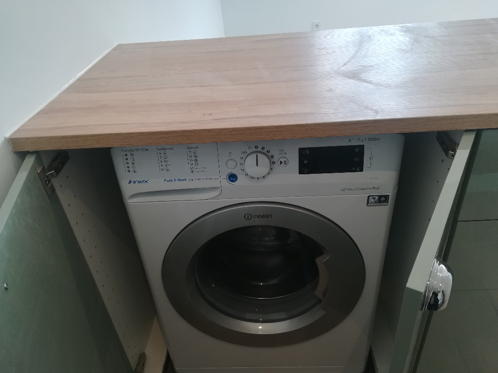 Apartamento muito luminoso. Sala com kitchenette, equipada com forno, placa ,exaustor, máquina da roupa, frigorífico e termoacumulador.